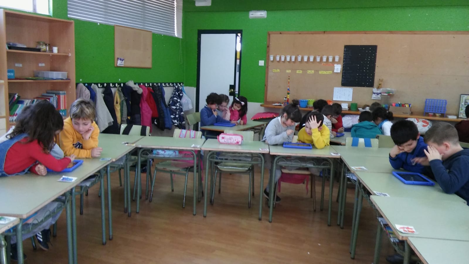 Os Robots aínda non chegaron e mentras tanto, familiarizasen co uso delas. O alumnado de 2º decidiu ensinarlles aos de 1º de Primaria o seu funcionamento.